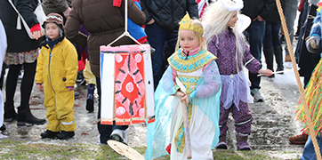 Fantasifuld udklædning og tøndeslagning i bygaden.