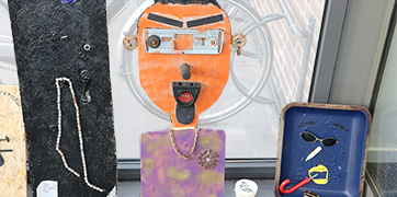 Traditionen tro blev der kreret sjove skulpturer af Vangedes store poet Dan Turèll. Materialerne er skrot samlet op i nærområdet. Foto: Claus Benzin